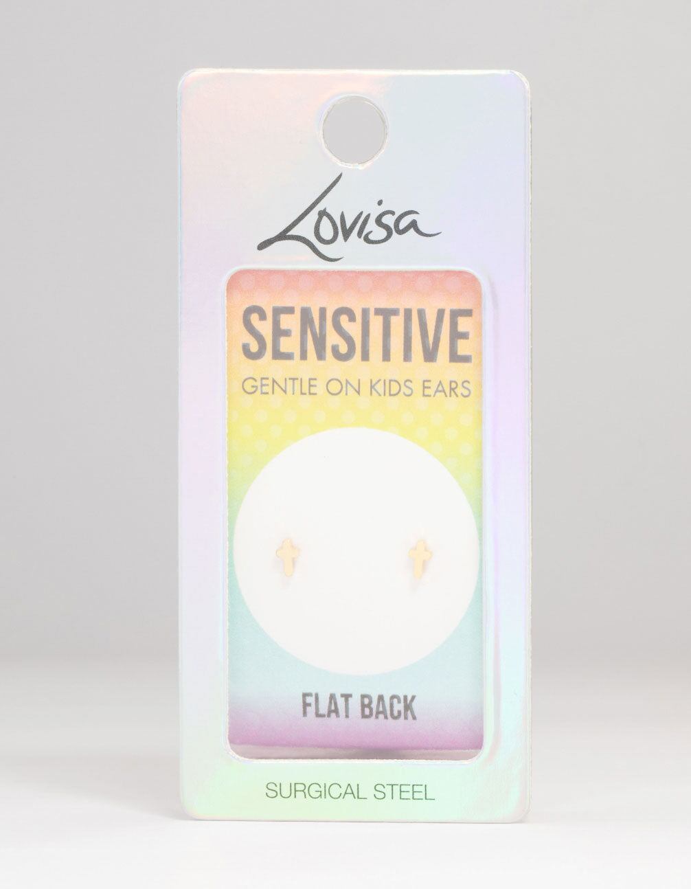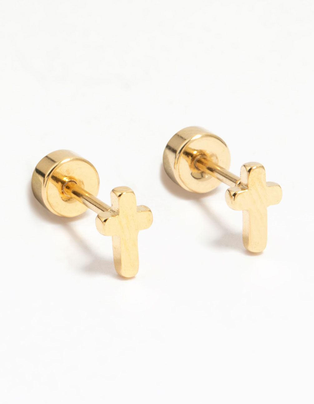 Kids Gold Plated Surgical Steel Cross Flat Back Earrings
