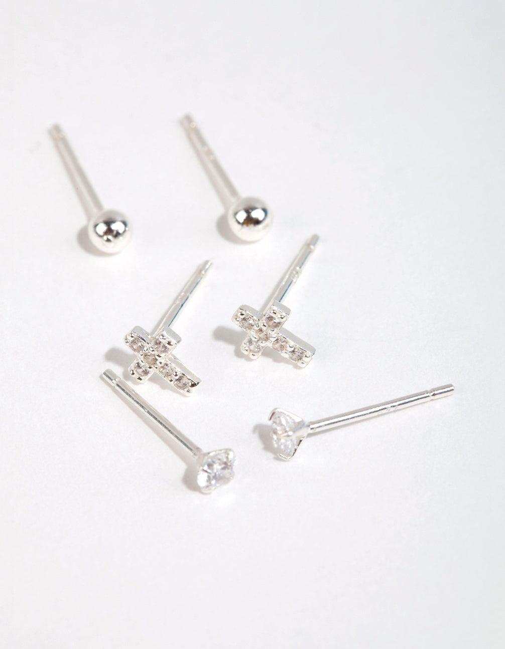 Sterling Silver Cross & Diamante Stud Earring Pack