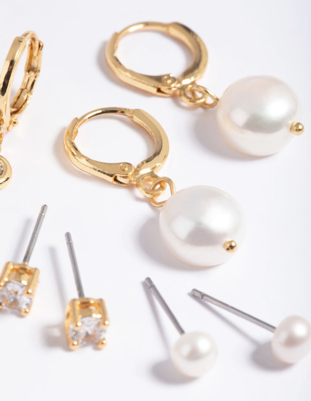 Gold Plated Freshwater Pearl Cubic Zirconia Earring Pack