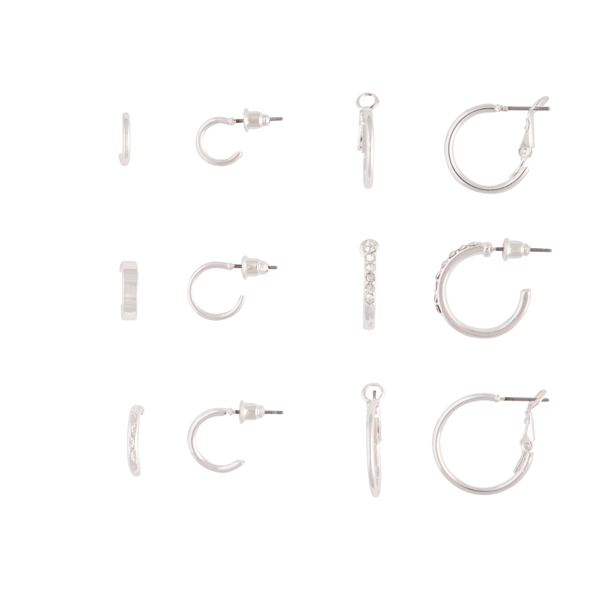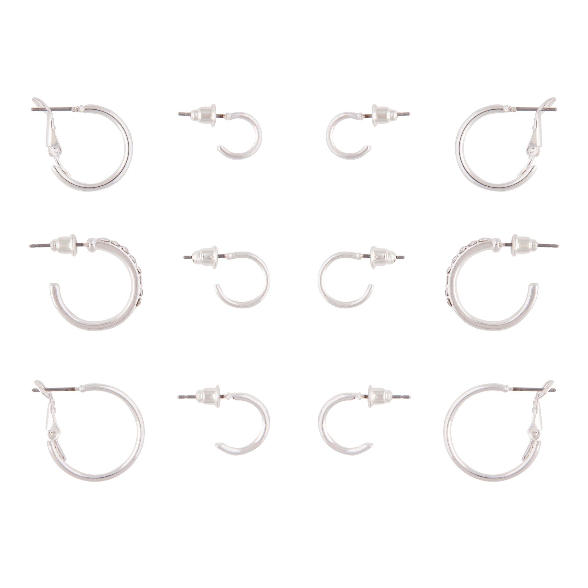 This 6 pack of silver-toned hoops comes in a variety of designs and sizes.