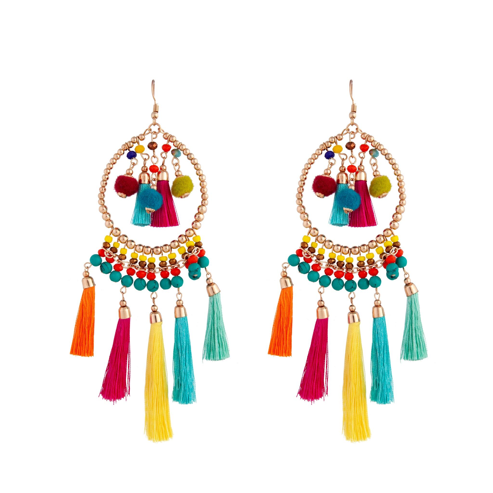 Mixed Brights Beaded Hoop With Pom Pom & Tassel Accents