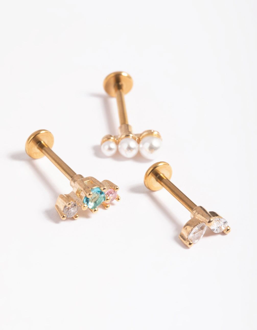 Express your individuality with Lovisa body jewellery! This premium flat back pack has been crafted with titanium. a quality material which reduces the risk of skin irritation. The gauge measures 16G/1.2mm. They feature flat backings which makes them more comfortable to wear in cartilage piercings. Layer them with a curated ear stack and get creative!