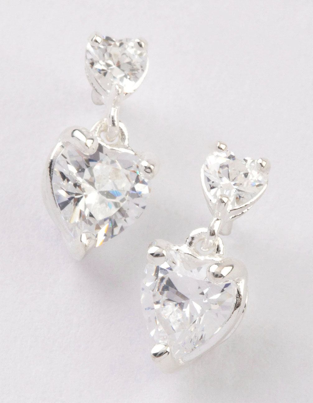 Sterling Silver Cubic Zirconia Heart Stud & Drop Earrings