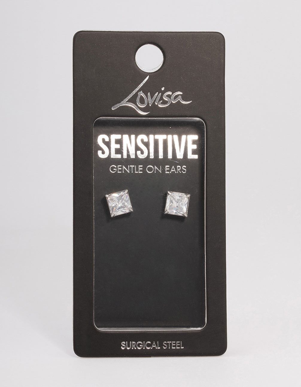 Surgical Steel Cubic Zirconia Cube Stud Earrings