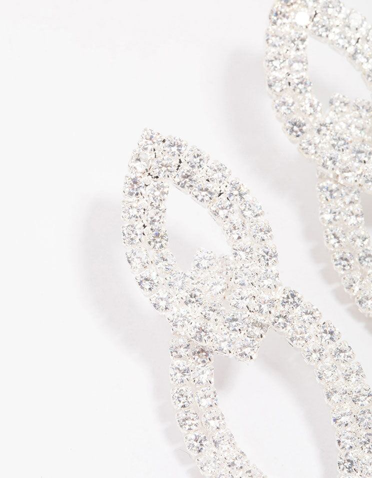 Material: Cubic ZirconiaThese silver-toned drop earrings feature a double-layered effect. embellished with delicate crystals. perfect for styling with an evening look.