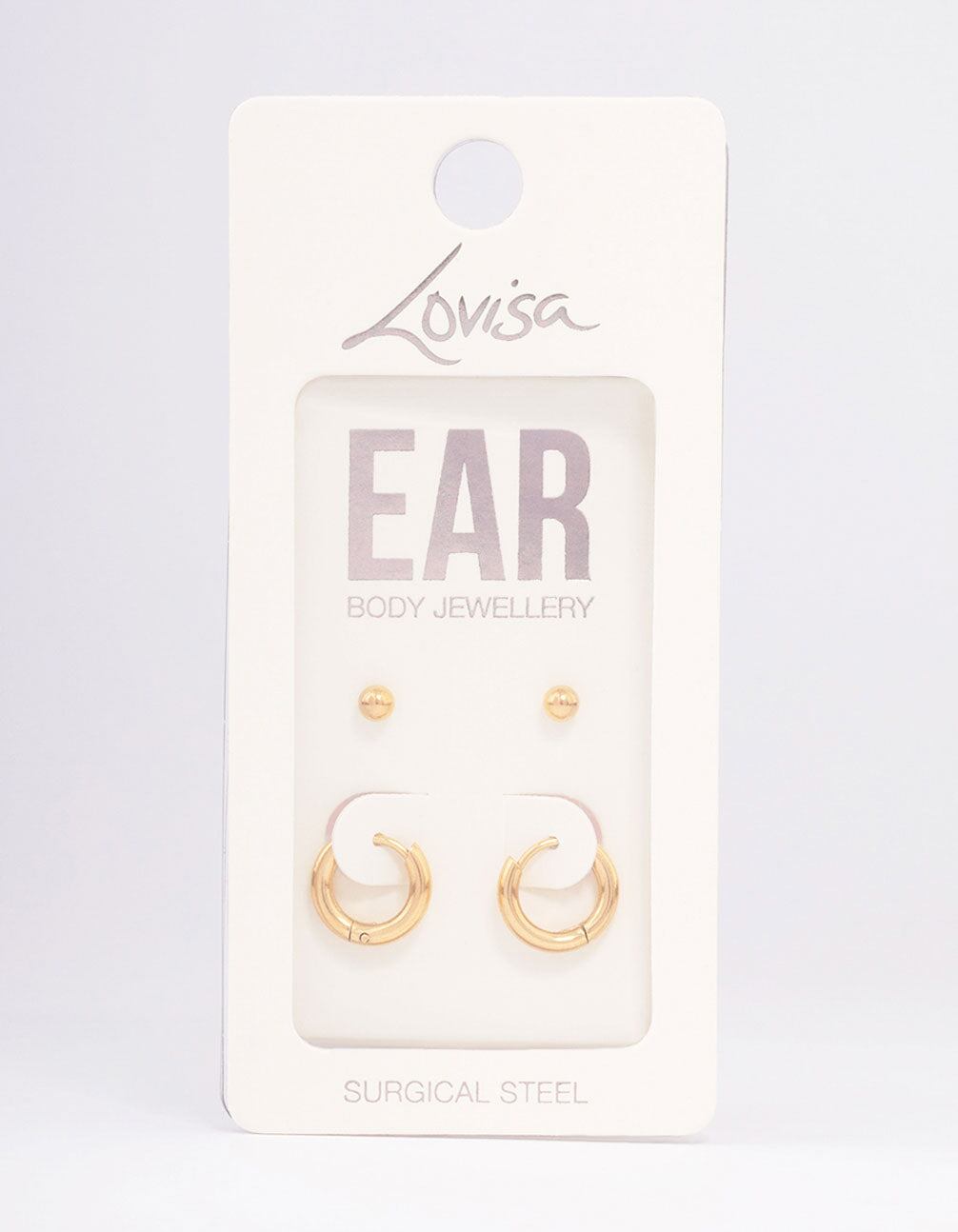 Gold Plated Surgical Steel Plain Stud & Huggie Earring Pack