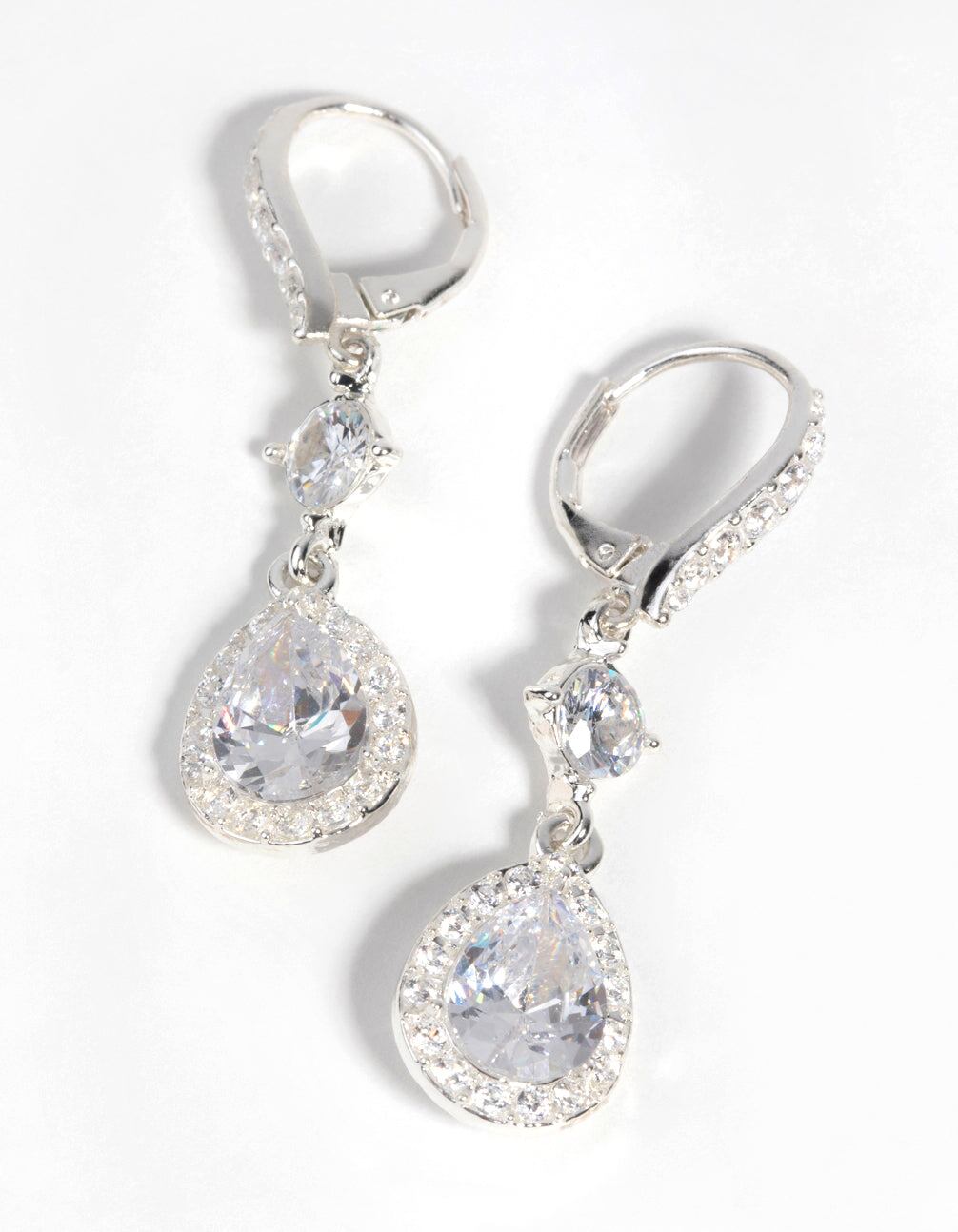 Silver Cubic Zirconia Pear Drop Earrings