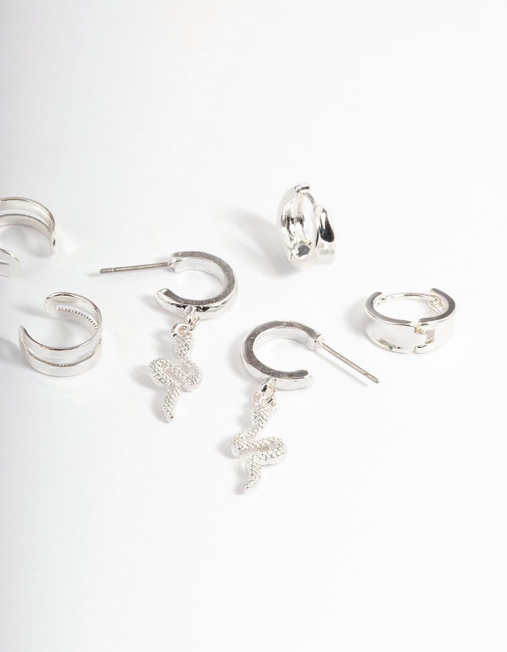 Expand your jewellery collection with essential earrings. including our range of versatile studs for everyday wear.Style our silver snake hoop earring pack with some matching snake motif accessories for a cohesive look.Weight: 12.8g