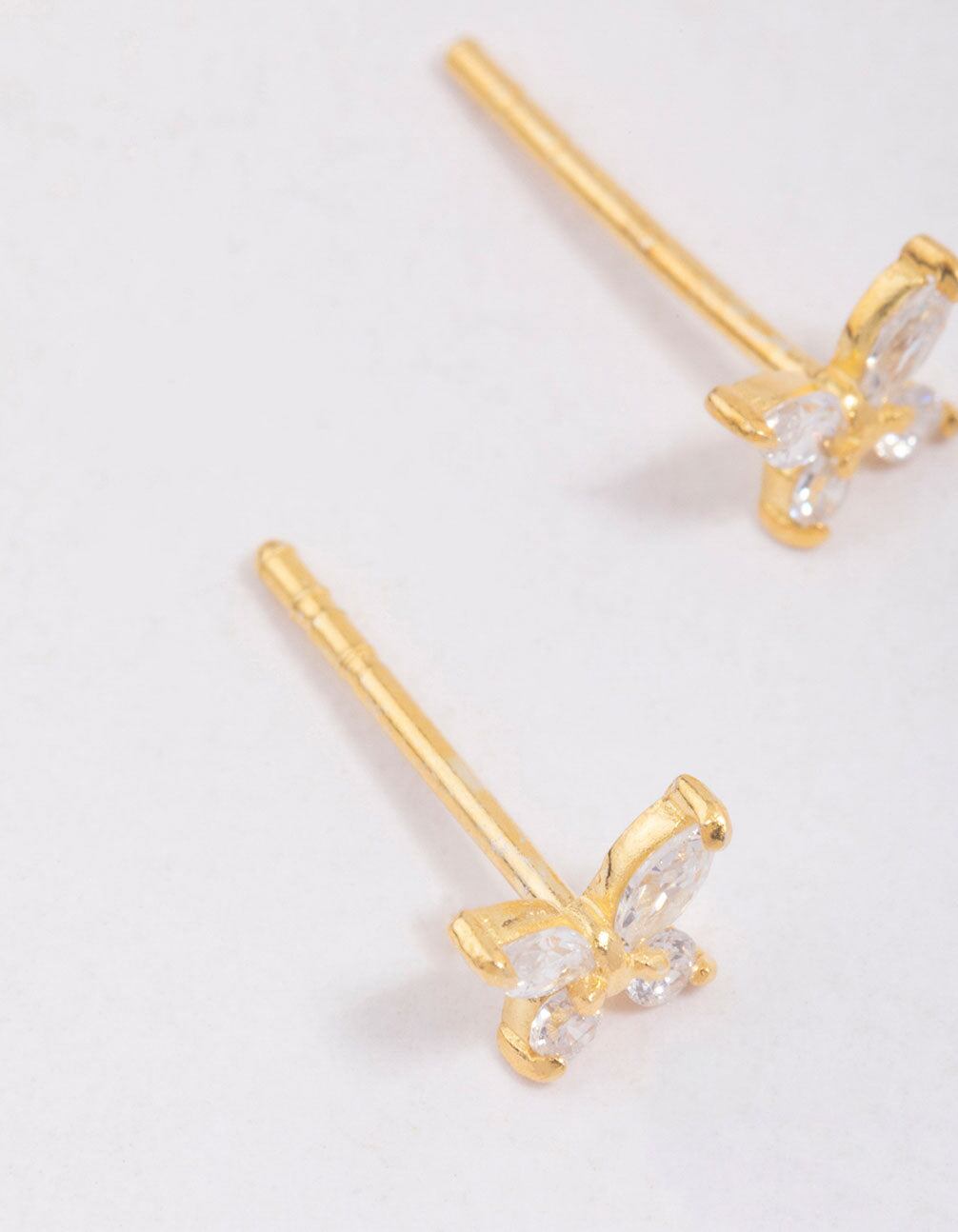 Gold Plated Sterling Silver Cubic Zirconia Butterfly Stud Earrings