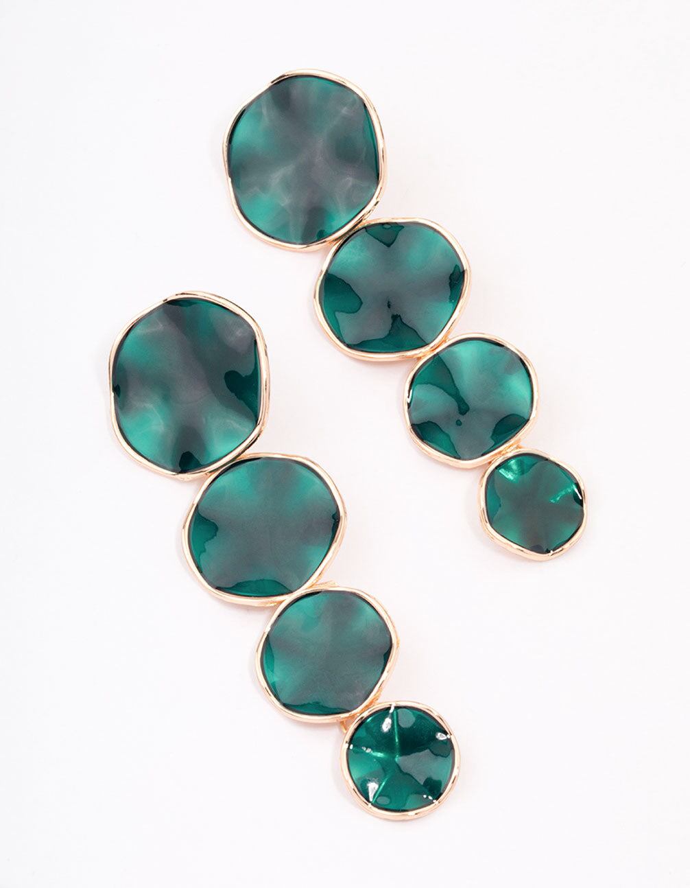 Style these Gold Multi-Disc Green Drop Earrings with a set of simple. gold-toned stud earrings for a layered look.Weight: 23.3g