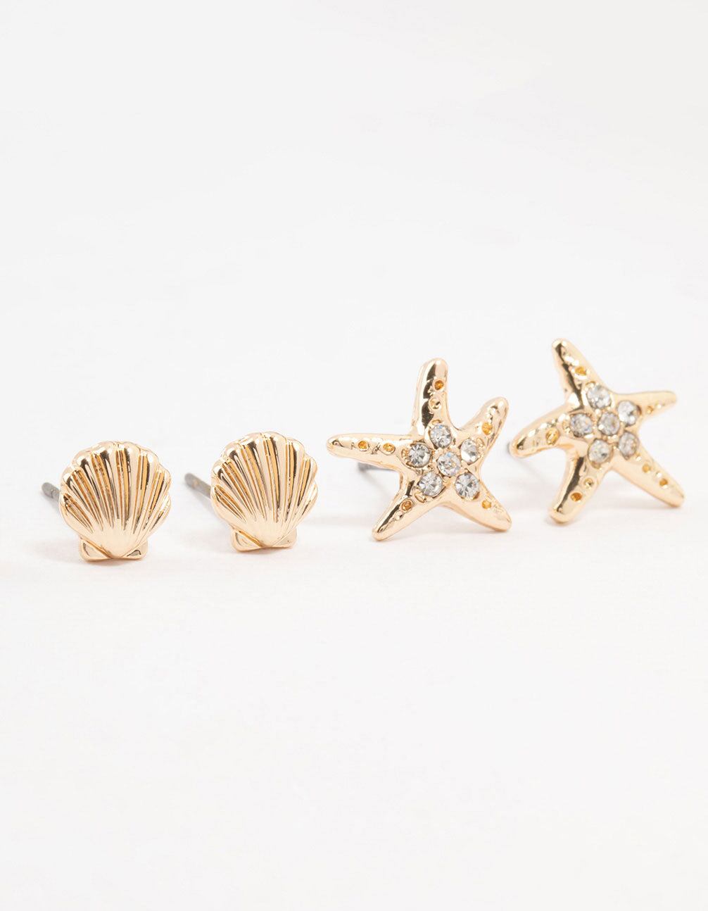 Dive into seaside glam with this five-piece earring set. From sparkling blue diamante to pearl centers. shimmering shells. and starfish designs. it's perfect for a fun. ocean-inspired ear stack or everyday vacay vibes.