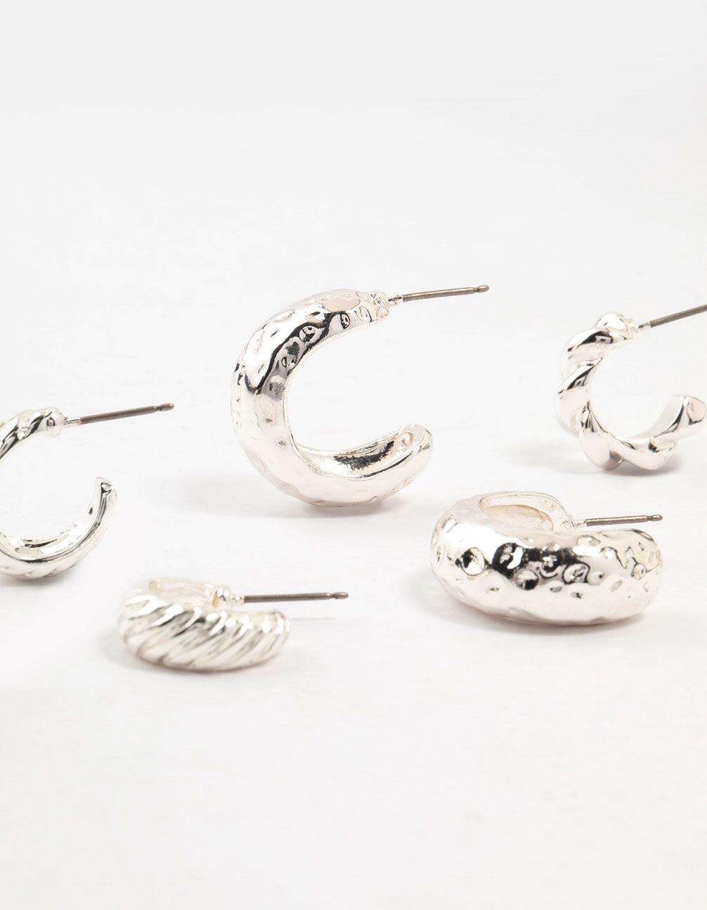 Silver Plated Molten Multiple Hoop Earrings 4-Pack