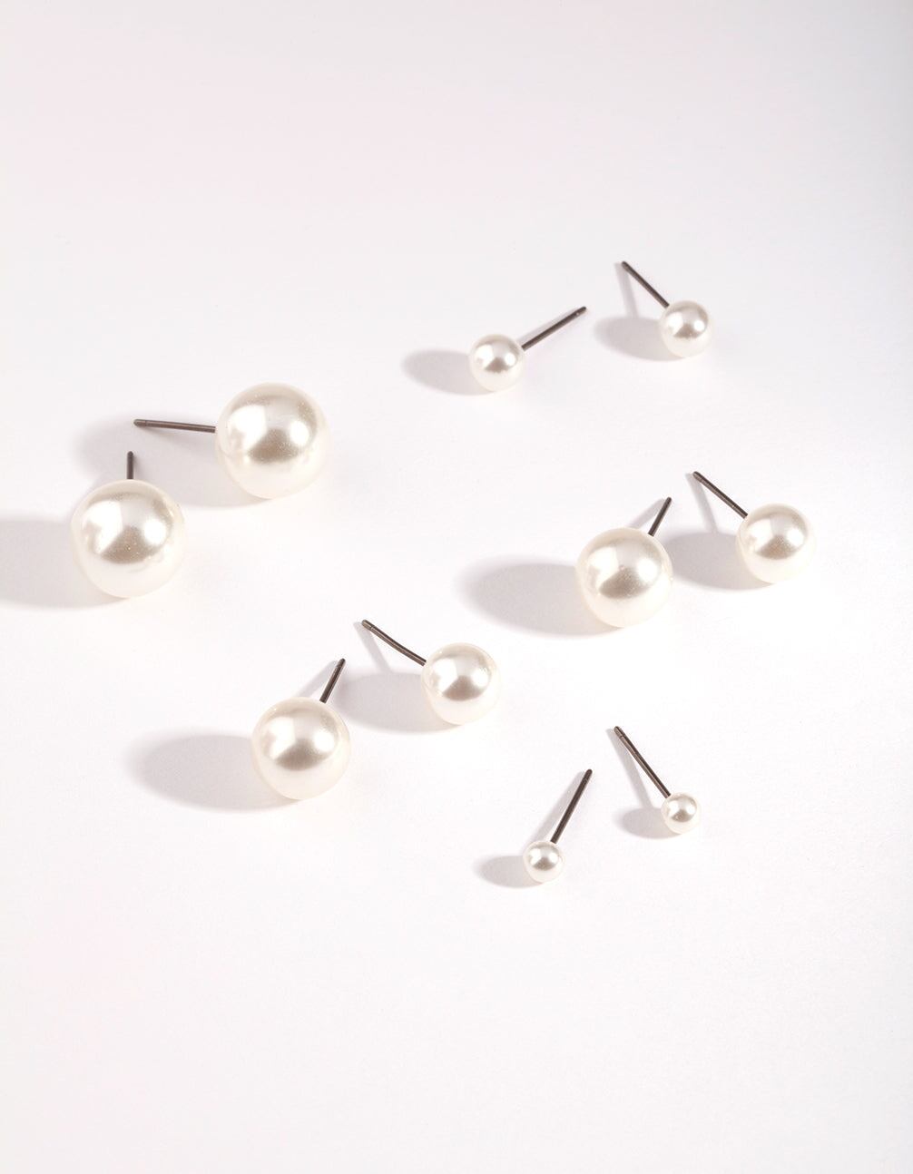 Glam up any outfit with this 5 pack of graduated faux pearl stud earrings.
