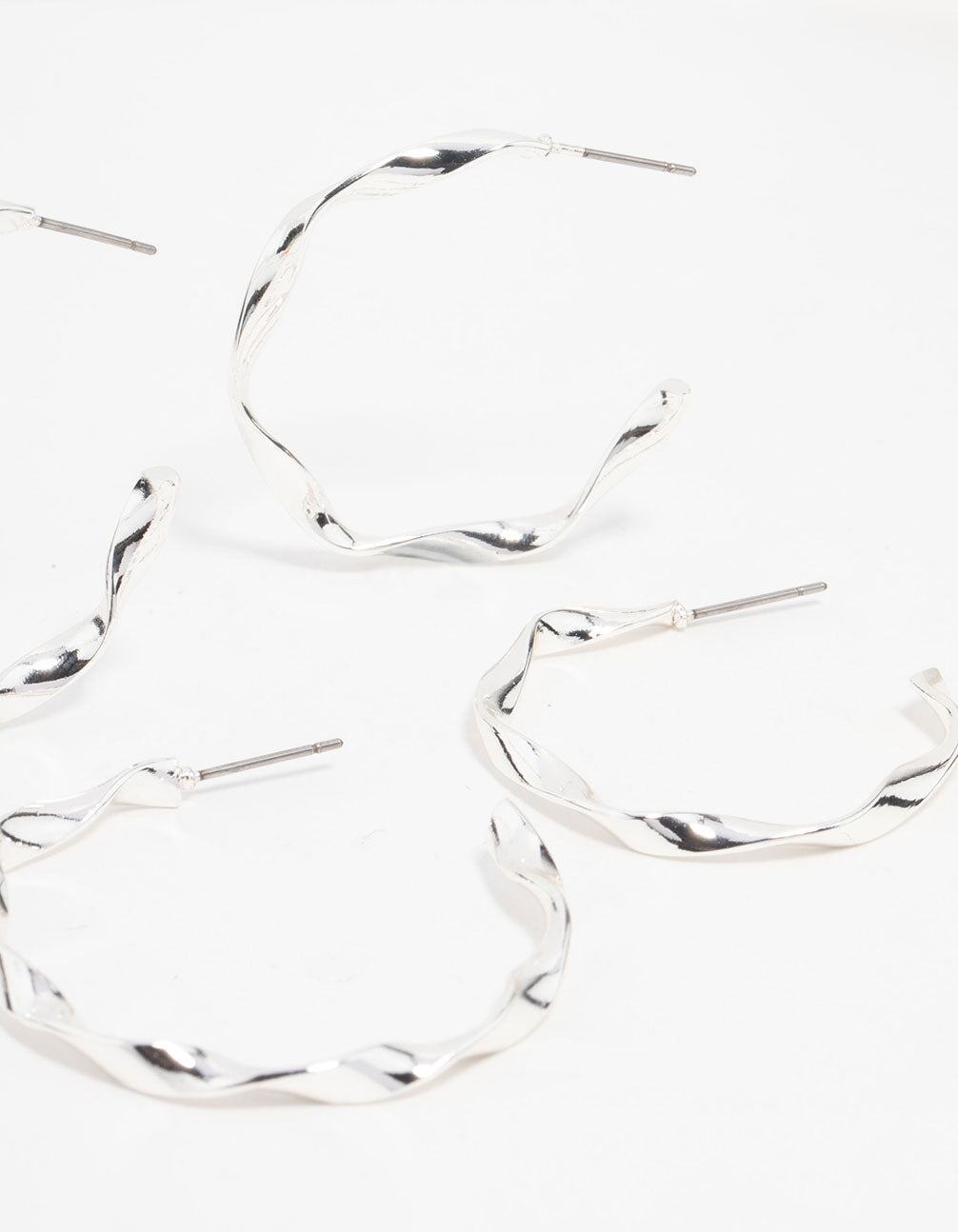 Add a playful twist to your style with this silver-toned hoop set! Featuring three twisted designs in different sizes. you can choose your statement level.