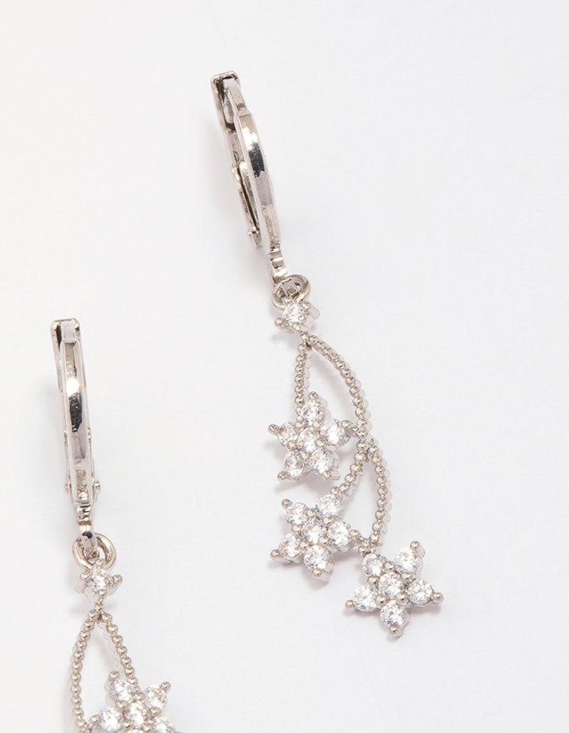 Silver Cubic Zirconia Celestial Hoop Earrings