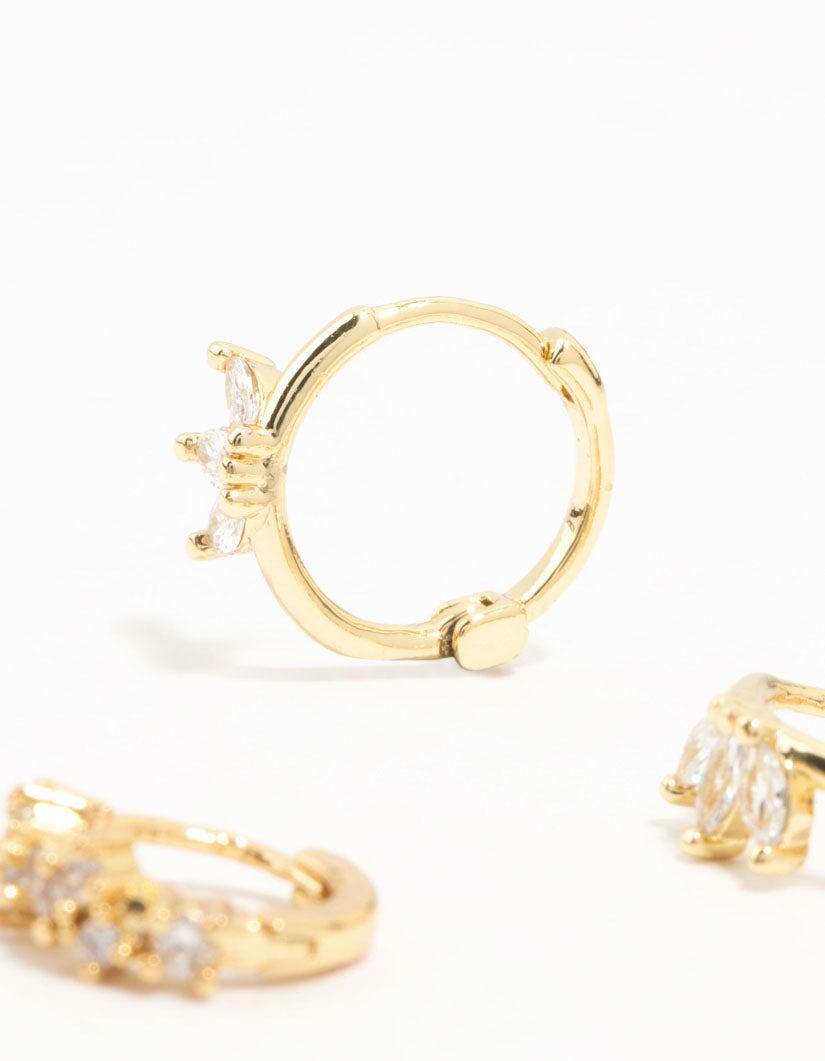 Gold Plated Brass Cubic Zirconia Leaf Hoop & Crawler Earrings 3-Pack