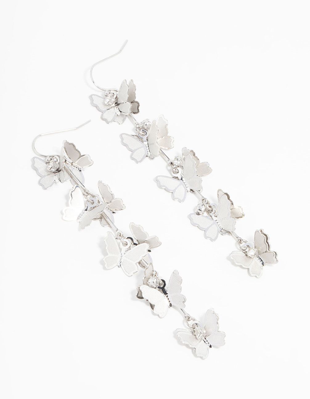 Bring some enchanting elegance with these silver toned drop earrings. These drop earrings feature beautiful butterfly designs that cascade down your ears for a magical look.