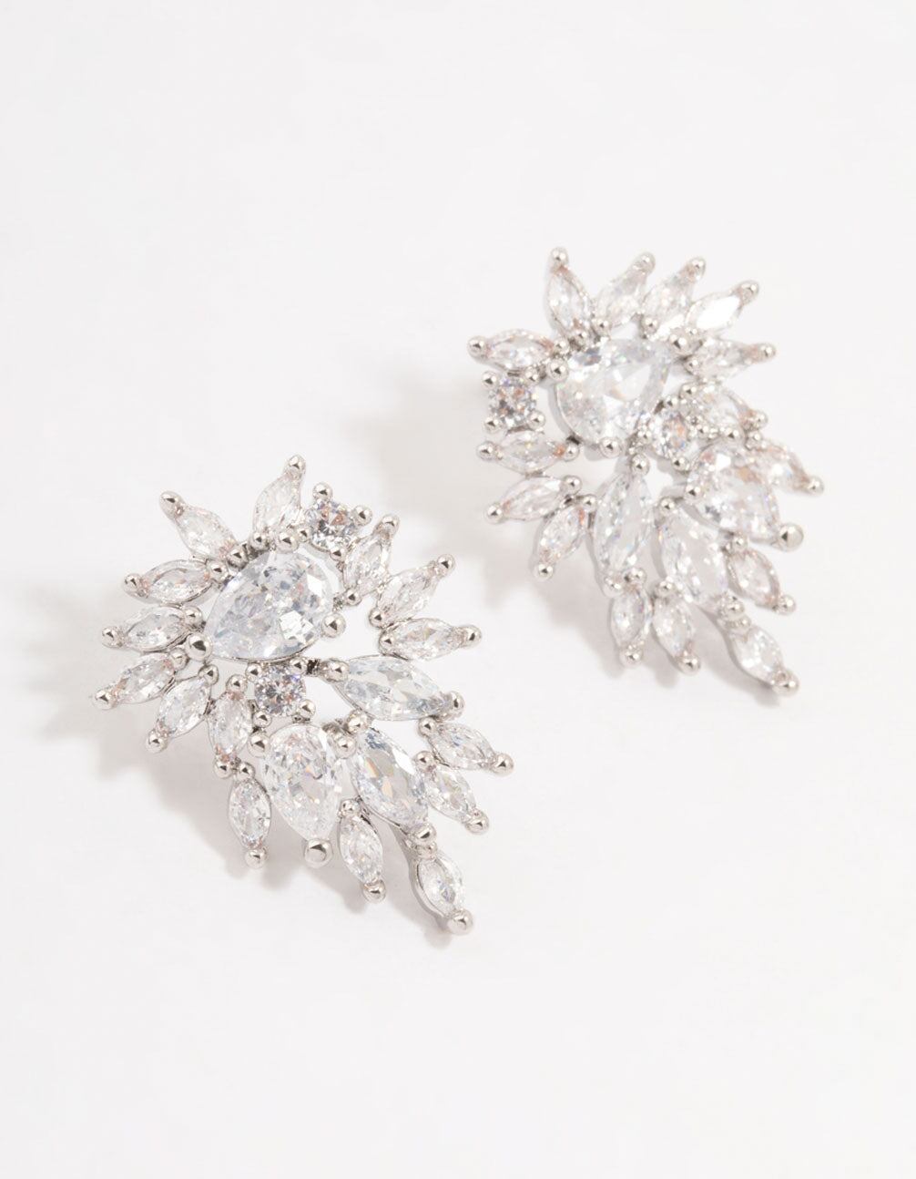 Silver Cubic Zirconia Cluster Drop Earrings
