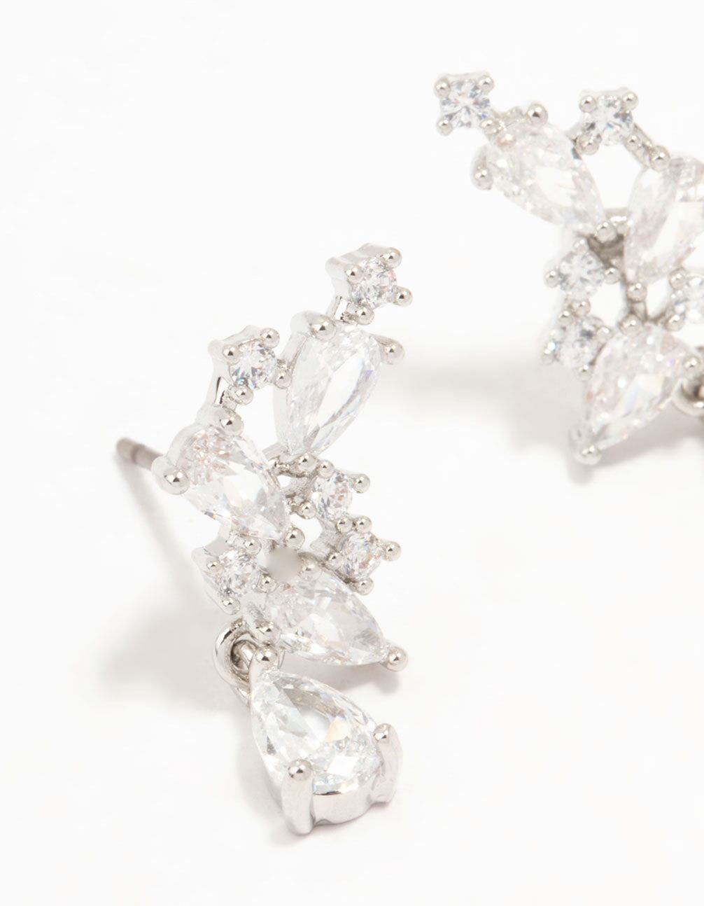 Silver Cubic Zirconia Drop Stud Earrings