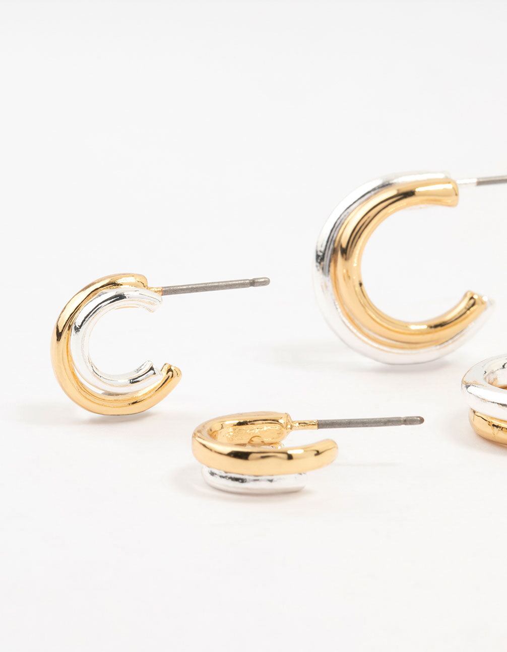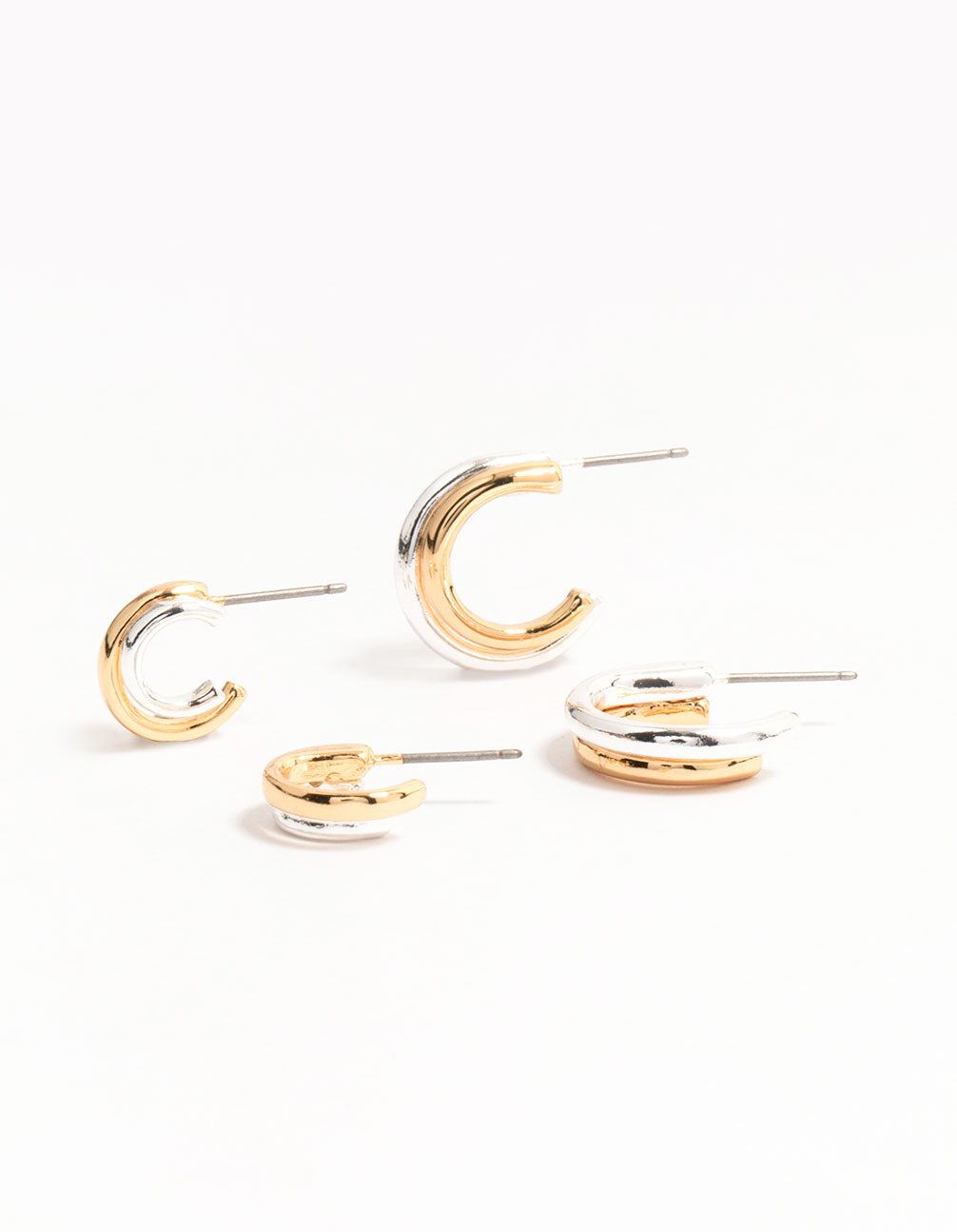 Mixed Metals Silver & Gold Plated Huggie Hoop Earrings 2-Pack