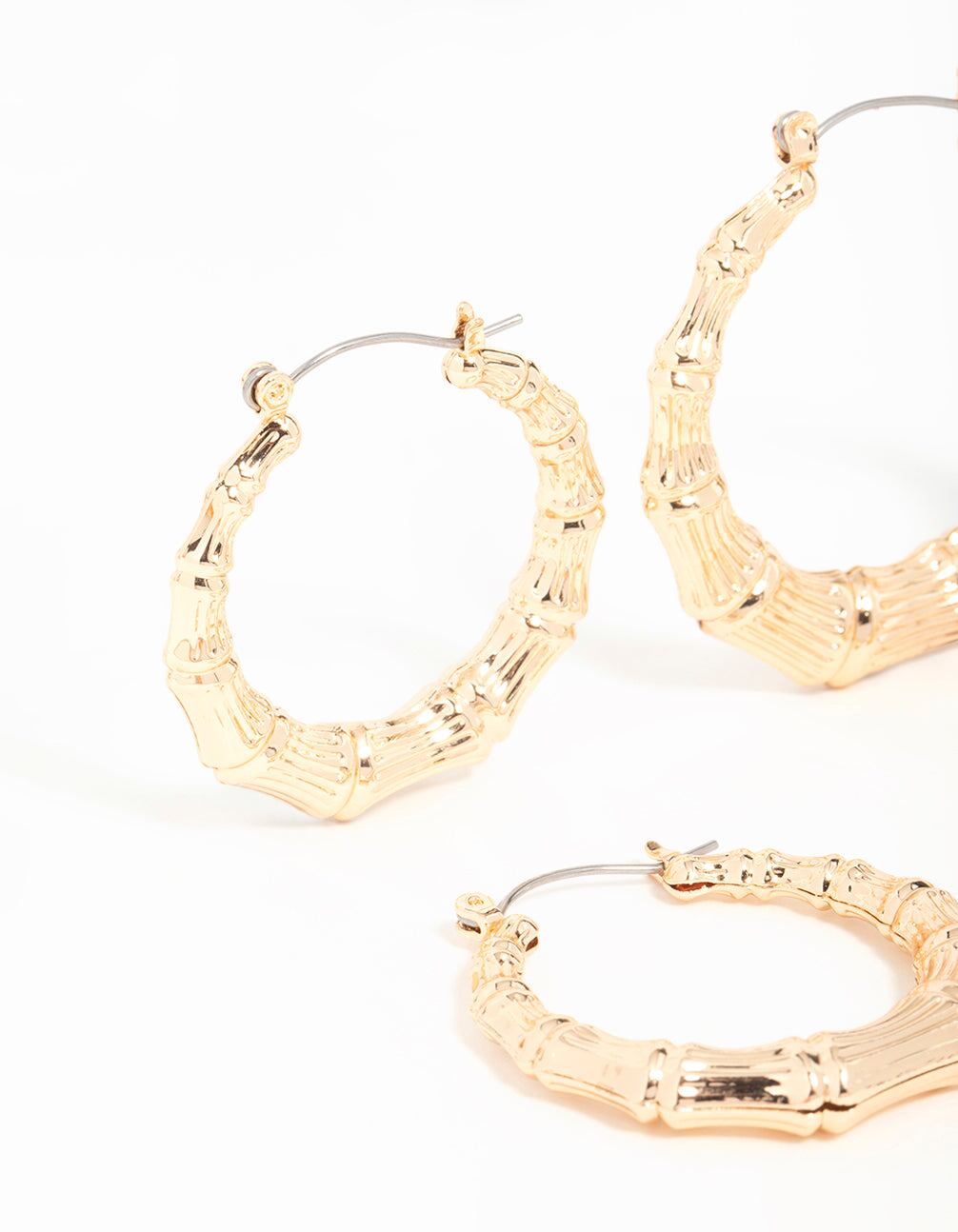 Gold Bamboo Hoop Earrings 3-Pack