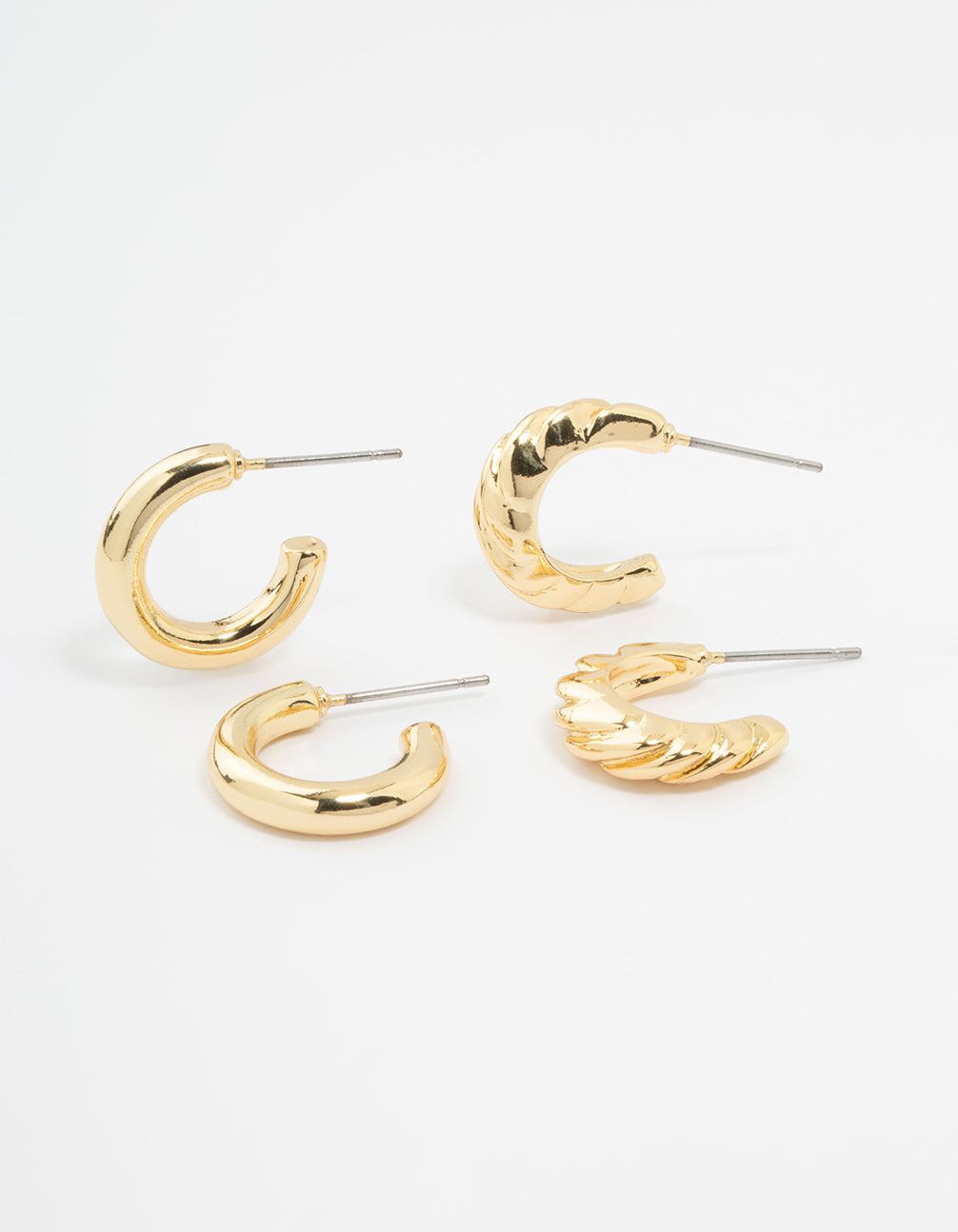 Spoil yourself with this gold-plated hoop set! One pair is sleek and plain. the other textured. Perfect for a clean. sophisticated look.
