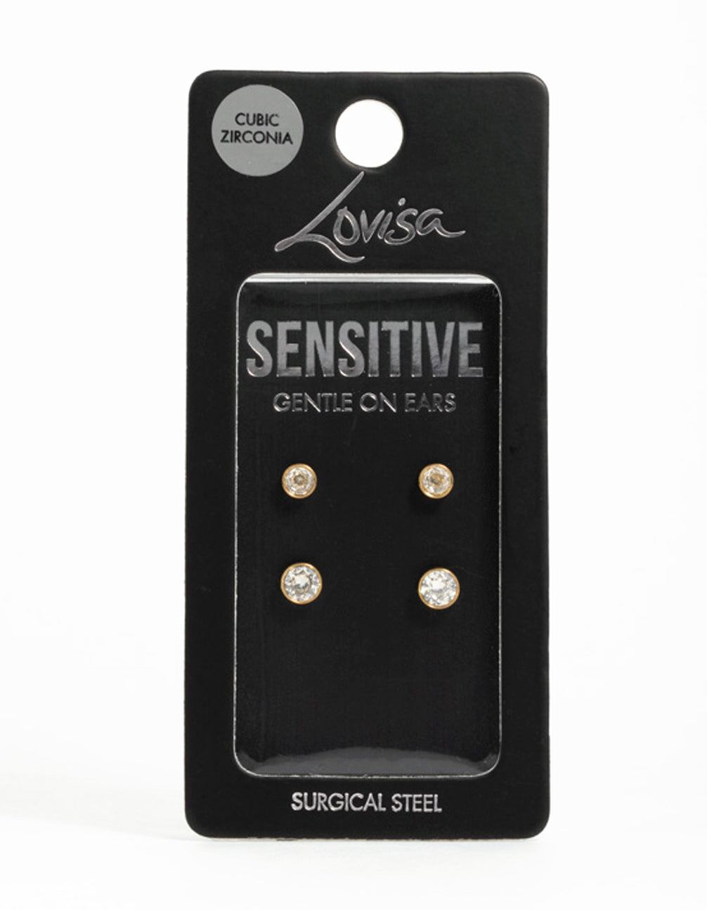 Add sparkle to your everyday with these Gold Plated Surgical Steel Cubic Zirconia Bezel Stud Earrings. Designed for sensitive ears. these chic studs feature timeless bezel set cubic zirconia crystals.