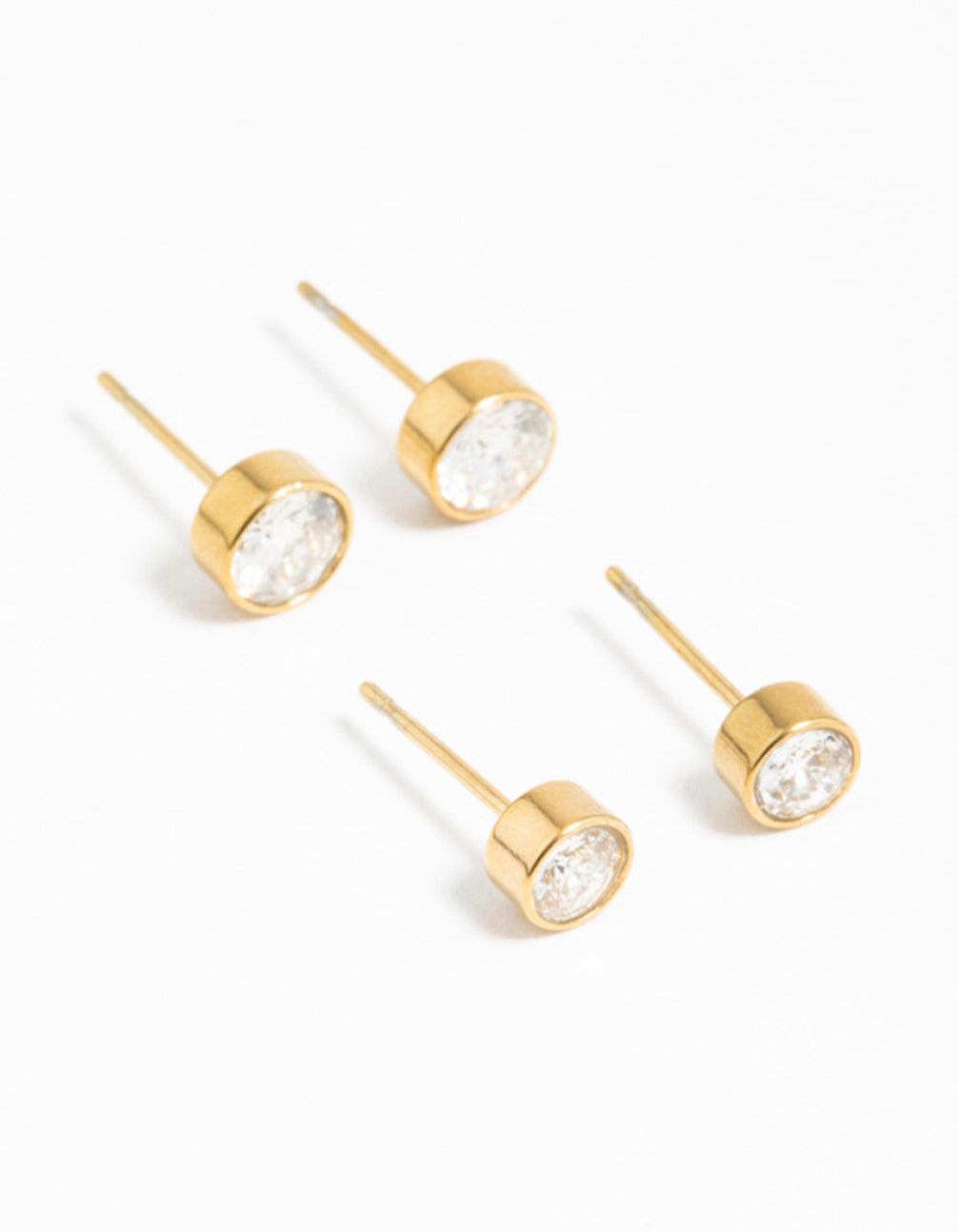 Gold Plated Surgical Steel Cubic Zirconia Bezel Stud Earrings