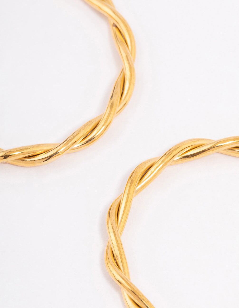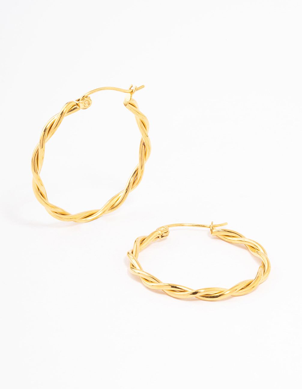 Waterproof Gold Plated Stainless Steel Medium Thin Twisted Hoop Earrings