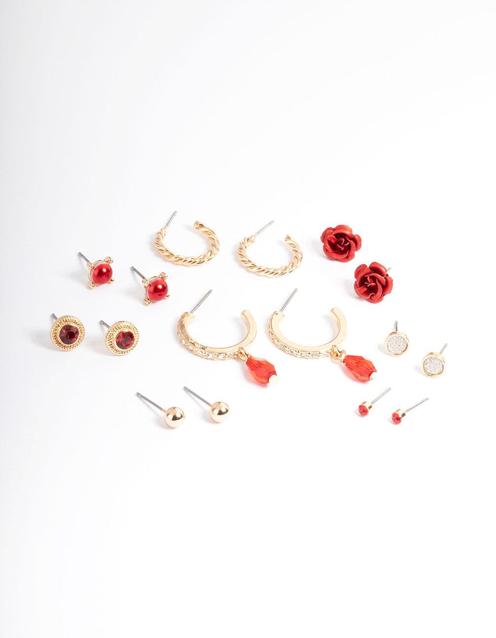 Gold Pretty Mixed Rose Earrings 8-Pack