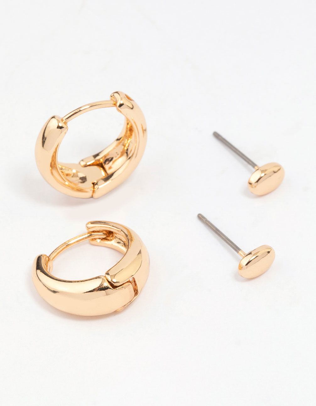 Gold Mixed Simple Stud & Hoop Earring 3-Pack
