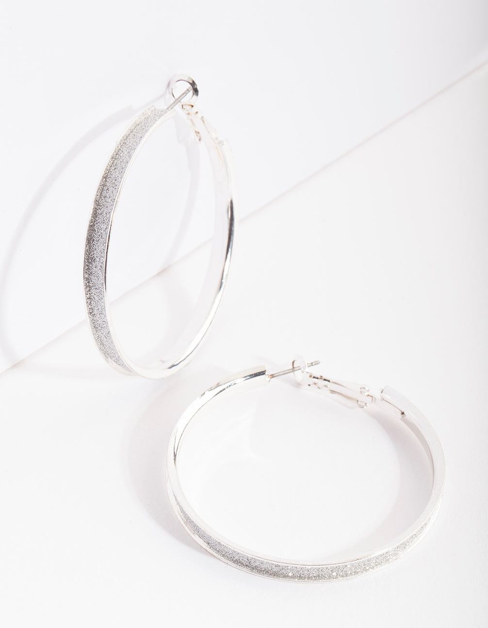 Silver Glitter Inset Hoop Earrings