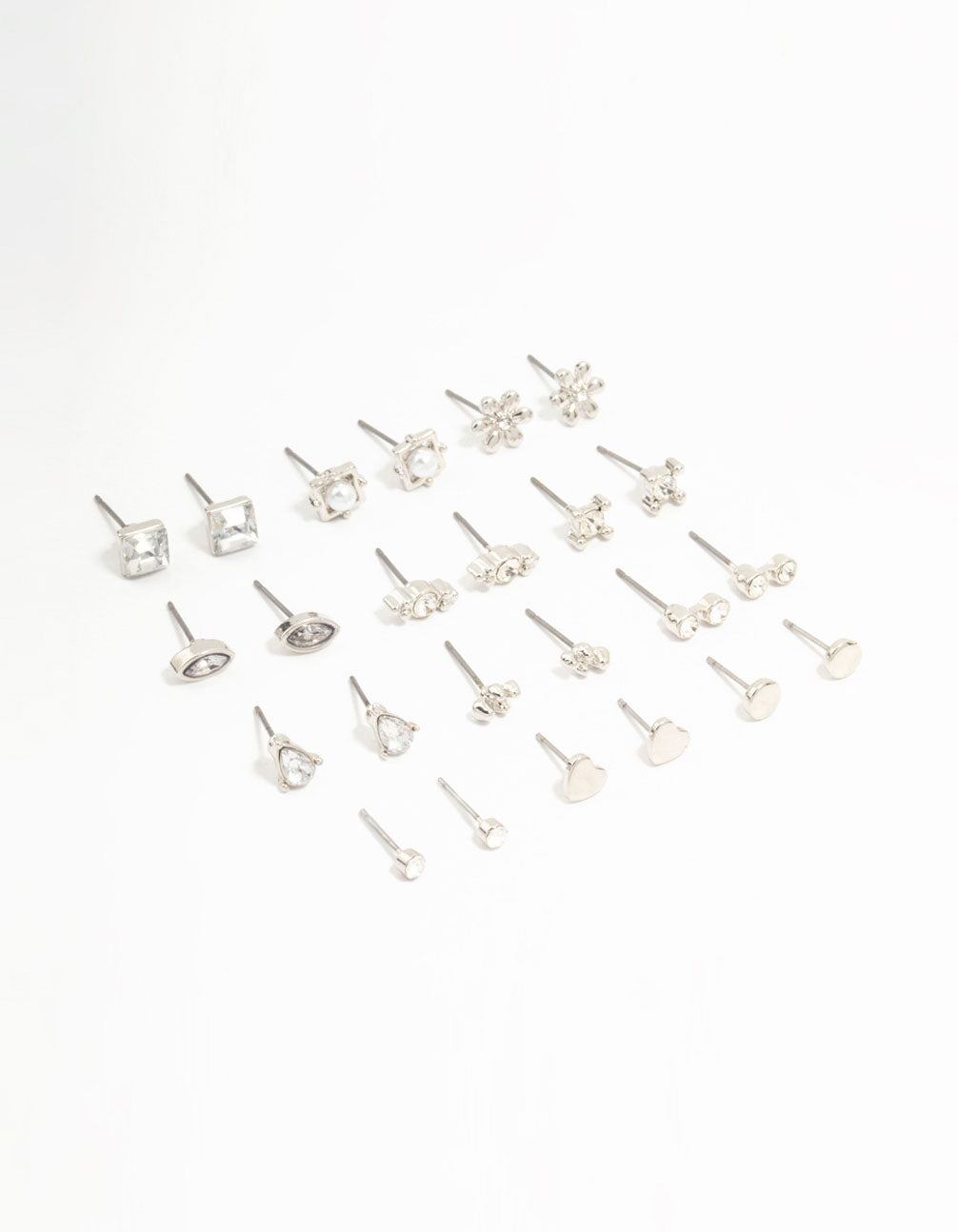 Upgrade your style with this 12-pack of dazzling silver studs. This set features 12 sleek diamante stud earrings. so you can mix & match to create your own signature look.