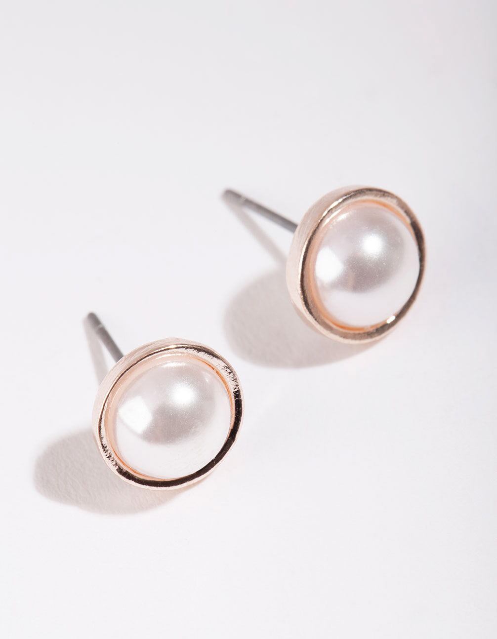 Elevate your daily ensemble with this rose gold toned pearl casting stud earring.
