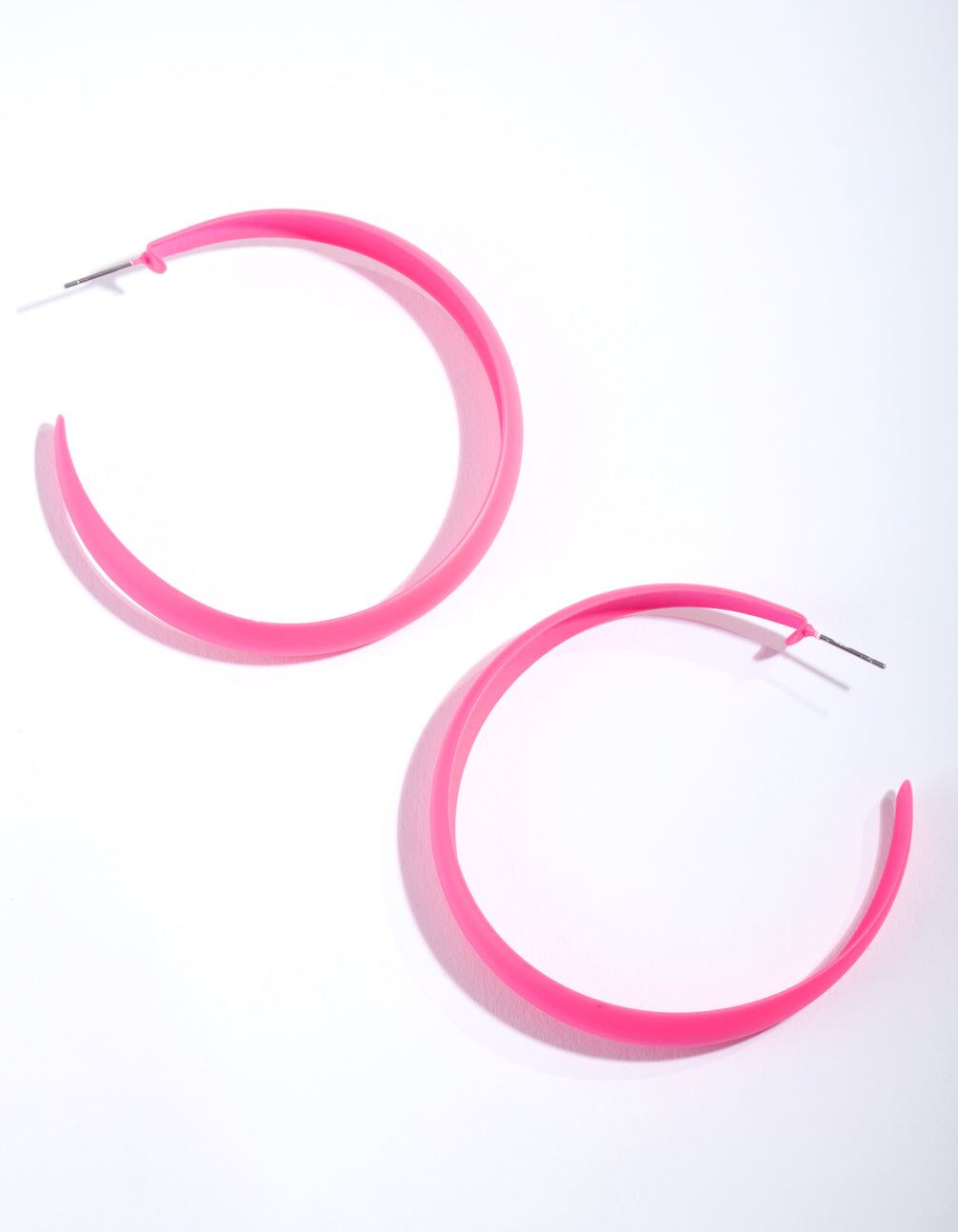 Make a statement with a pair of show-stopping fashion earrings. This pair features a neon pink hoop design.