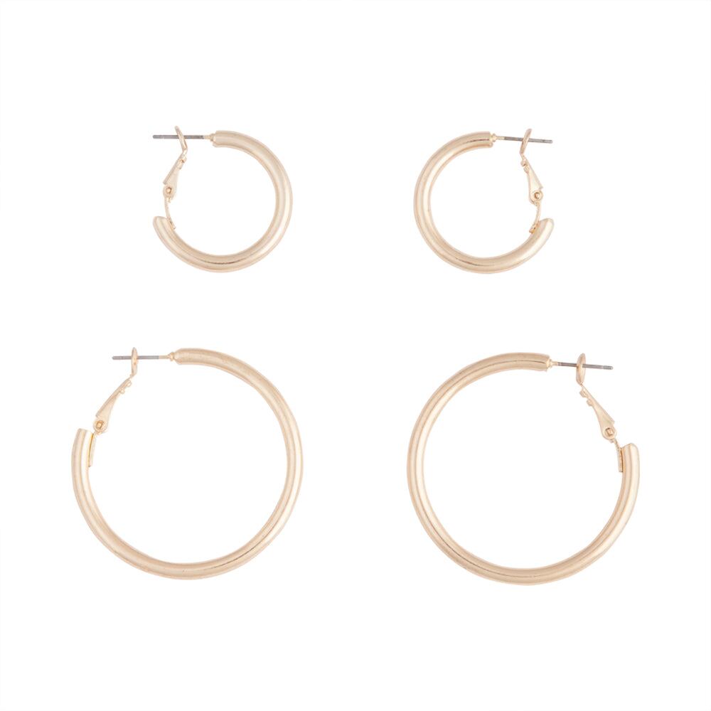 This pack of chunky hoops are a wardrobe essential. Each hoop is made with a polished gold tone.