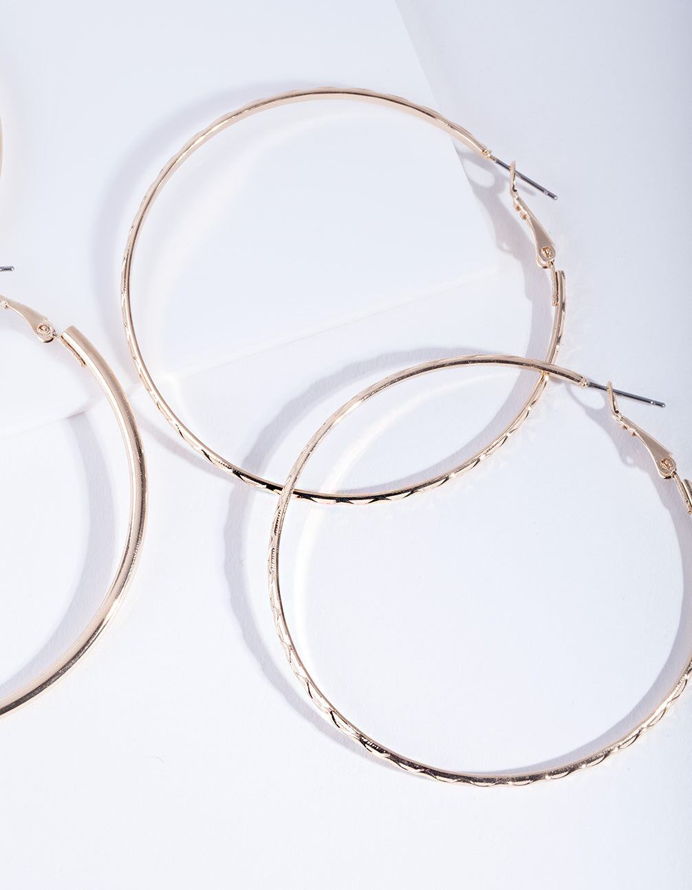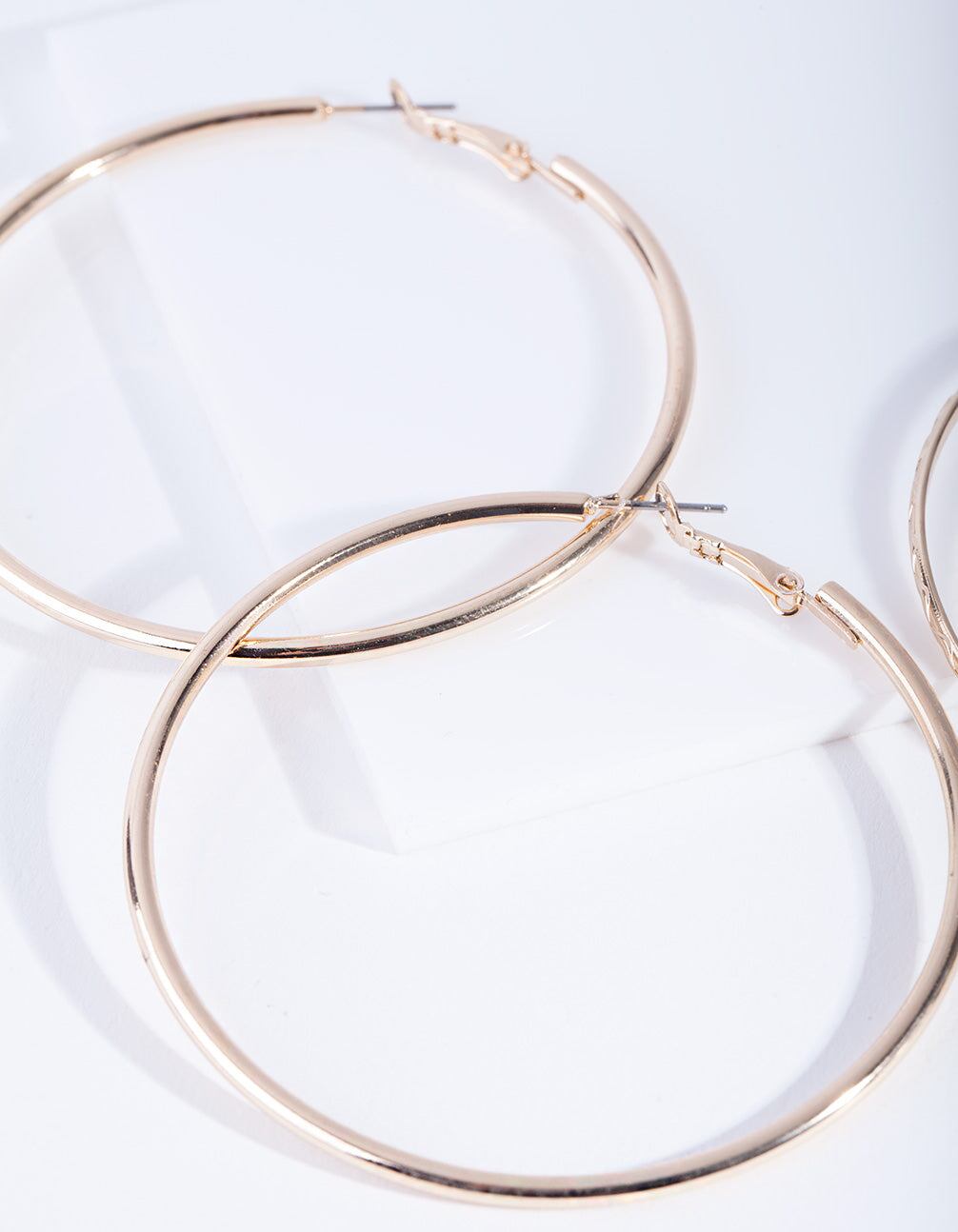 It takes two! This gorgeous pack of two classic hoop earrings are gold-toned and feature a 6cm in diameter. A classic hoop is such a staple in any wardrobe. not just a trend; hoops are forever!