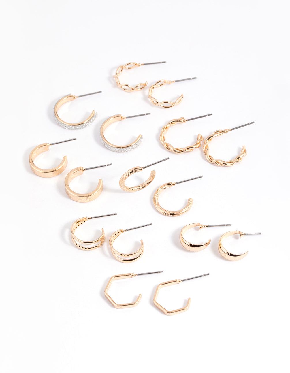 Gold Glittered & Textured Hoop Earring 8-Pack