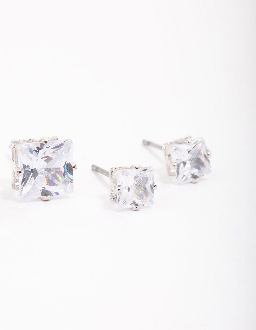 Silver Cubic Zirconia Square Graduated Earrings Pack