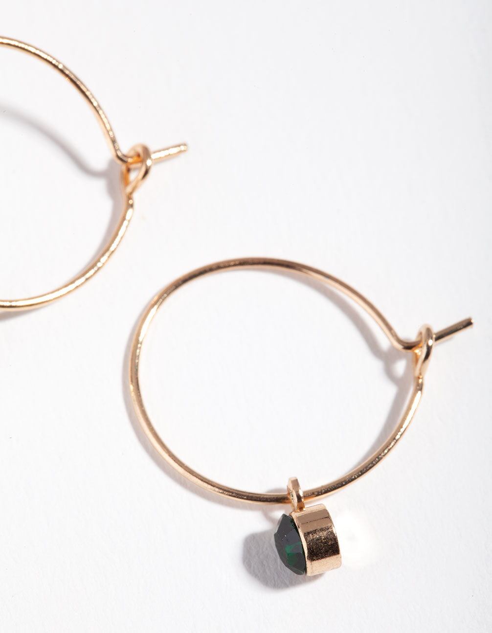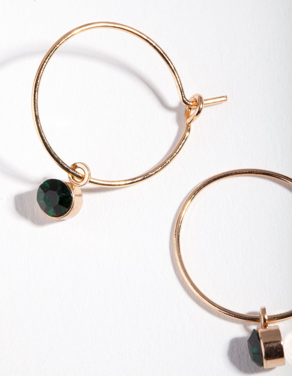 Gold Green Stone Fine Hoop Earrings