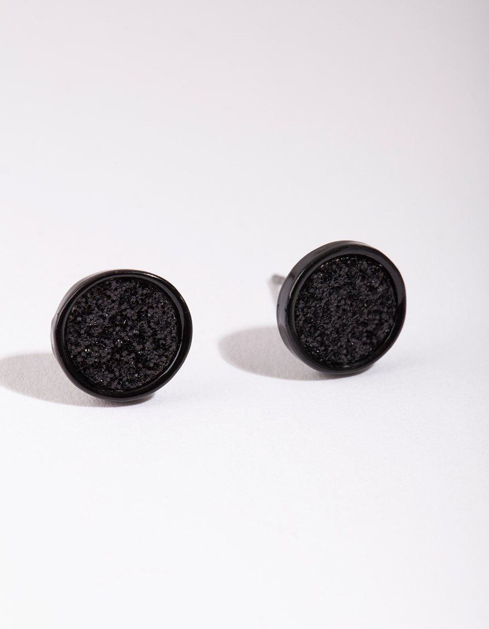 Mini Round Glitter Studs In Black