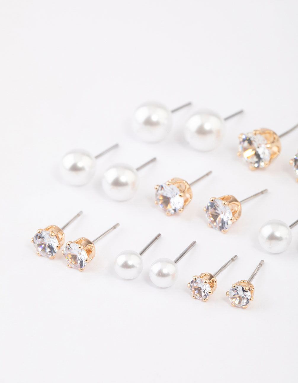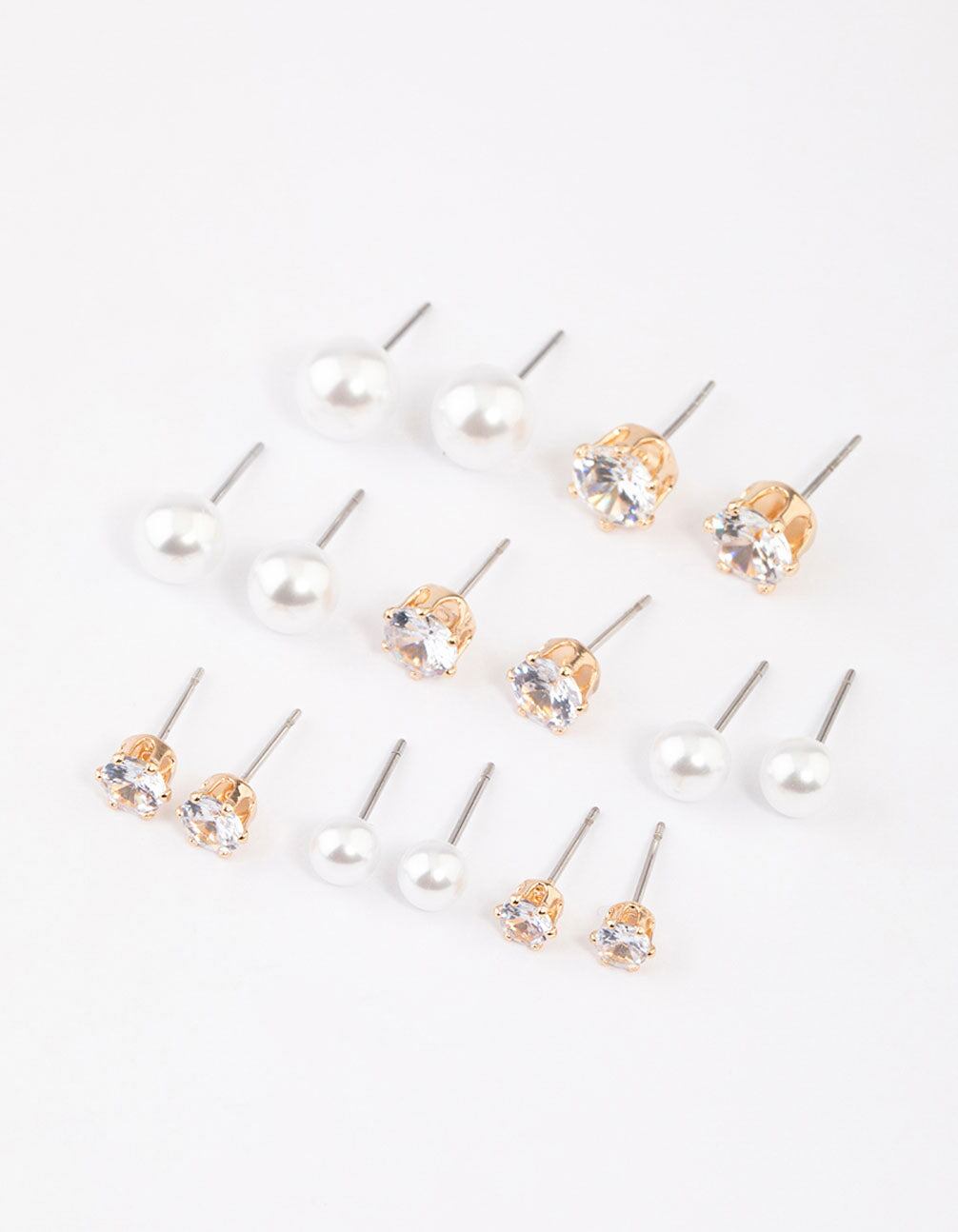 Gold Graduating Diamante & Pearl Earrings 8-Pack