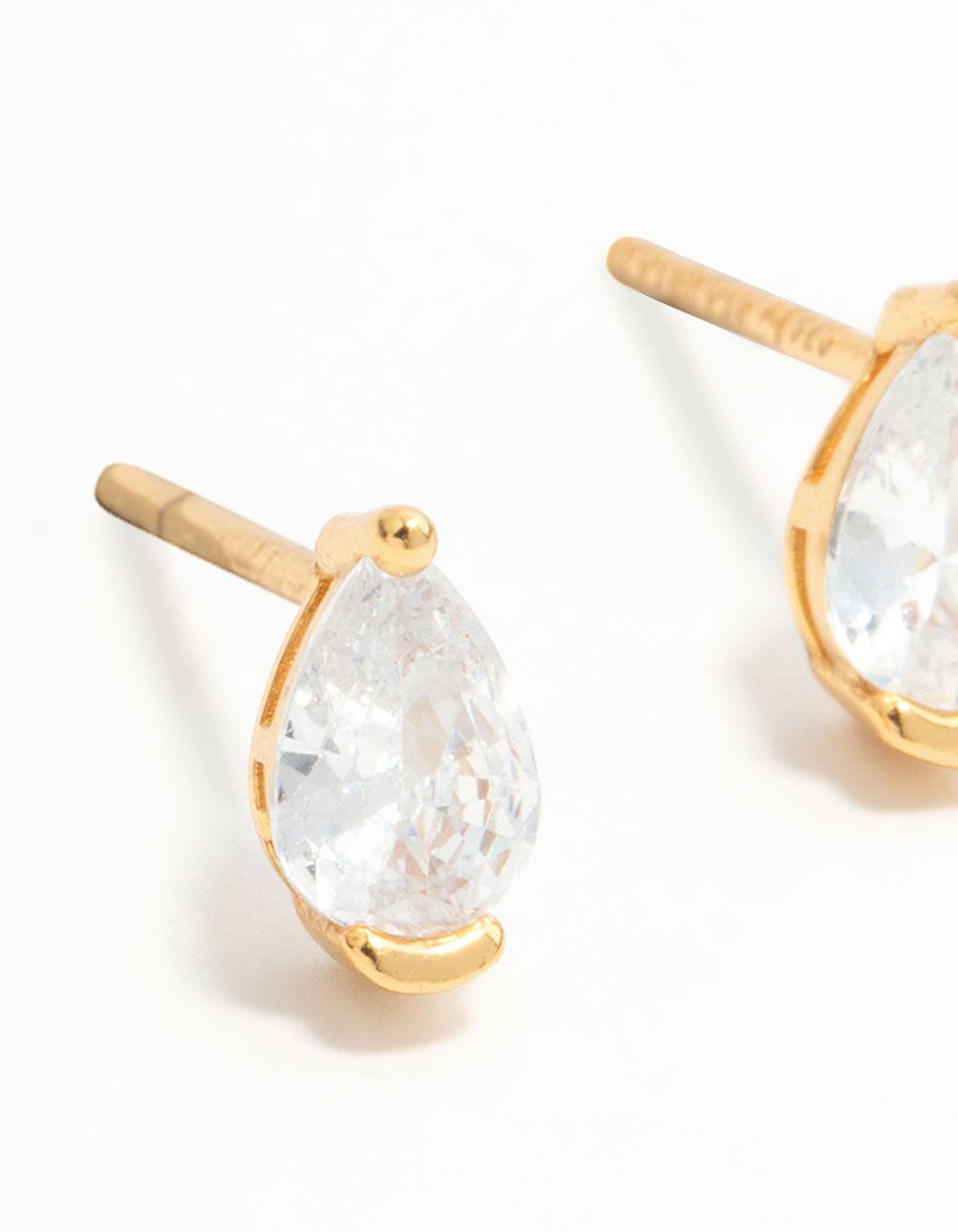 Gold Plated Sterling Silver Pear Shaped Diamante Stud Earrings