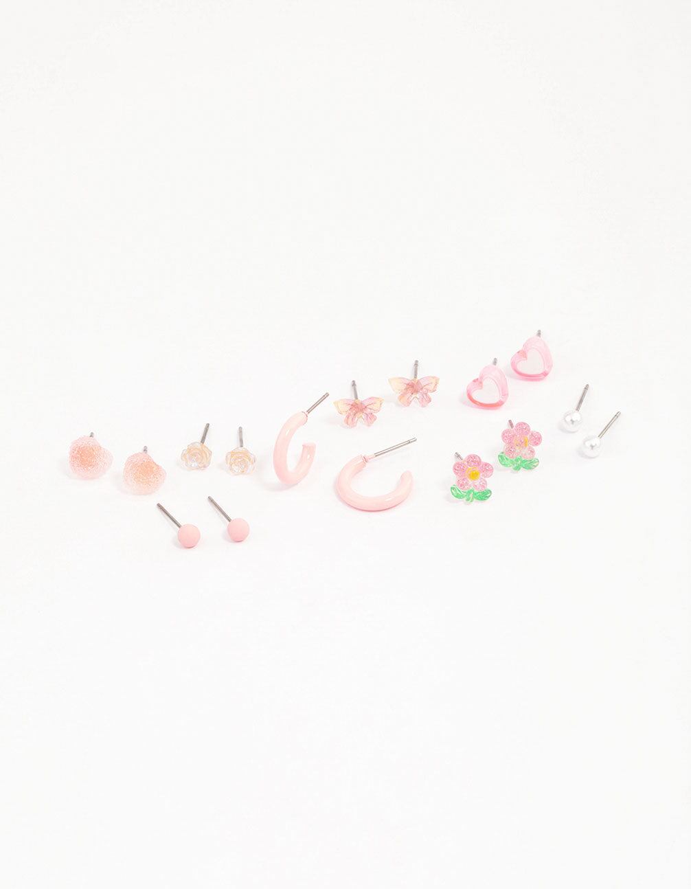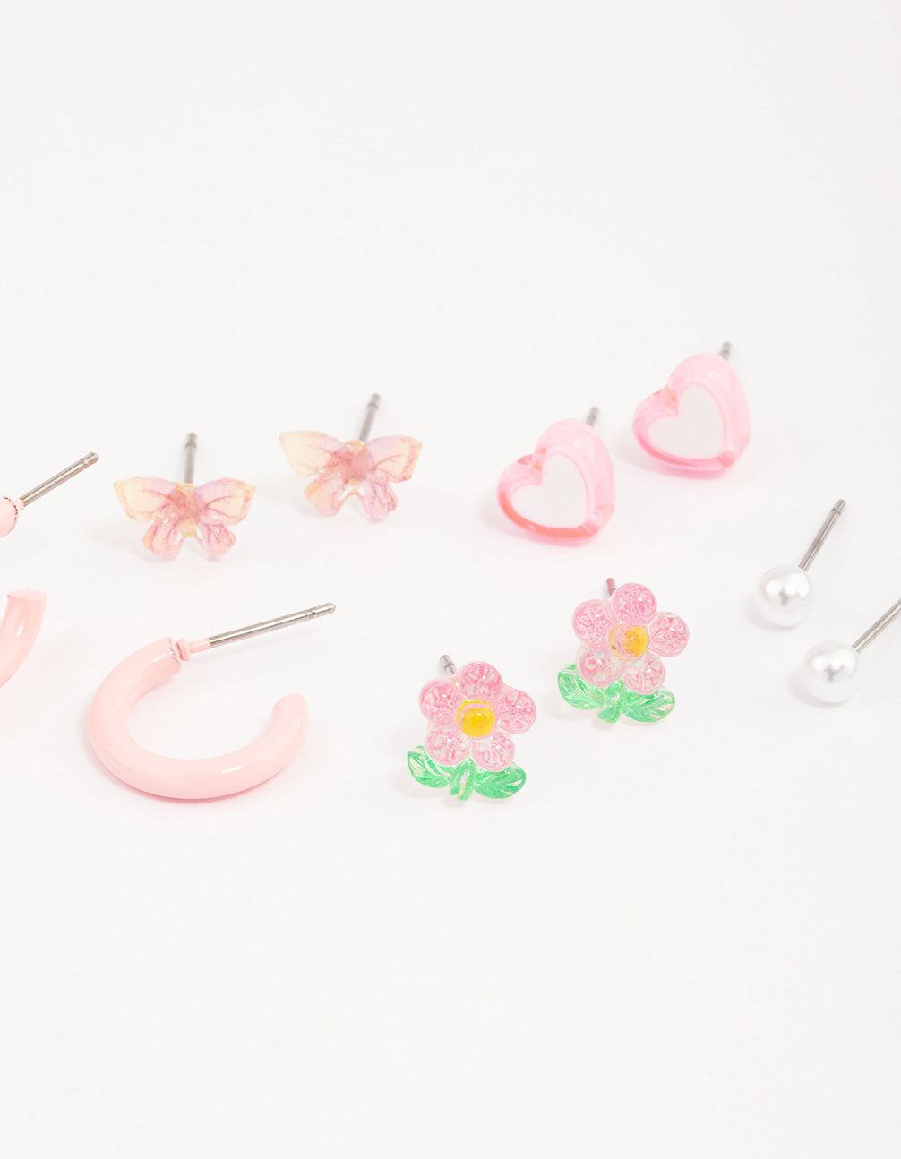 Pink Heart Flower & Butterfly Earrings 8-Pack
