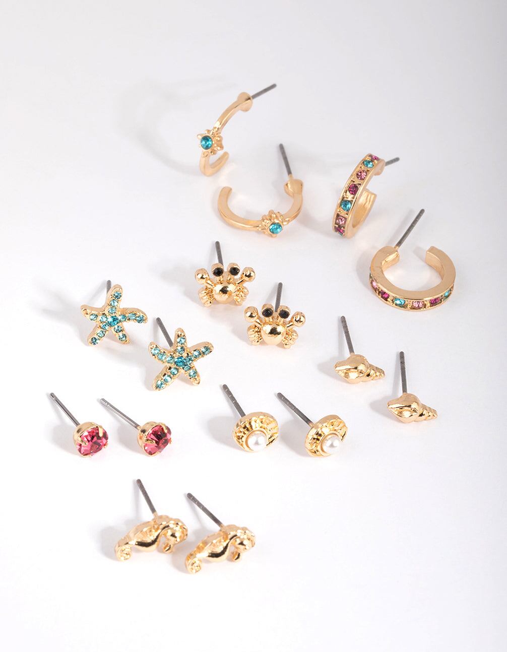 Gold Under the Sea Stud Earring 8-Pack