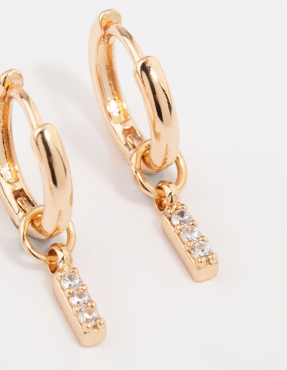 Gold Cubic Zirconia Heart & Twisted Huggie Earrings 3-Pack