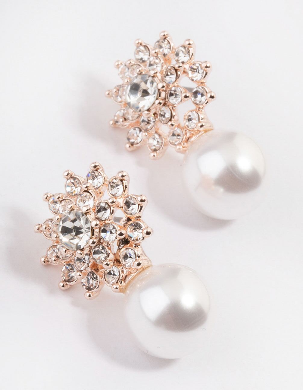 Rose Gold Diamante Swirl Pearl Stud Earrings
