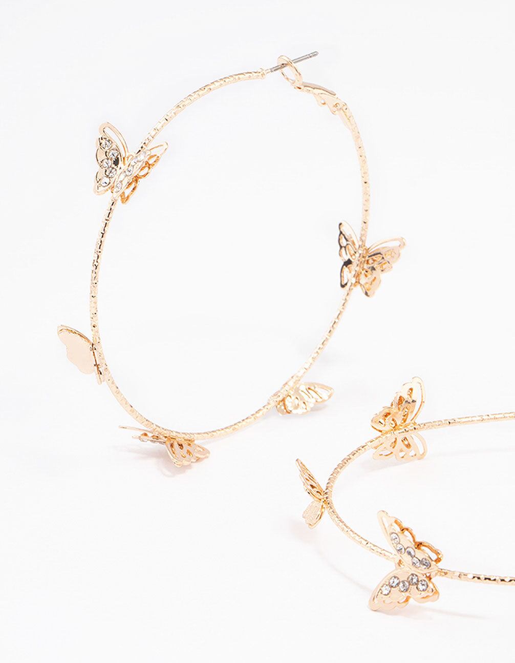 Style these gold. butterfly motif hoop earrings with a simple gold butterfly pendant necklace for a chic. cohesive look.Weight: 10.6g