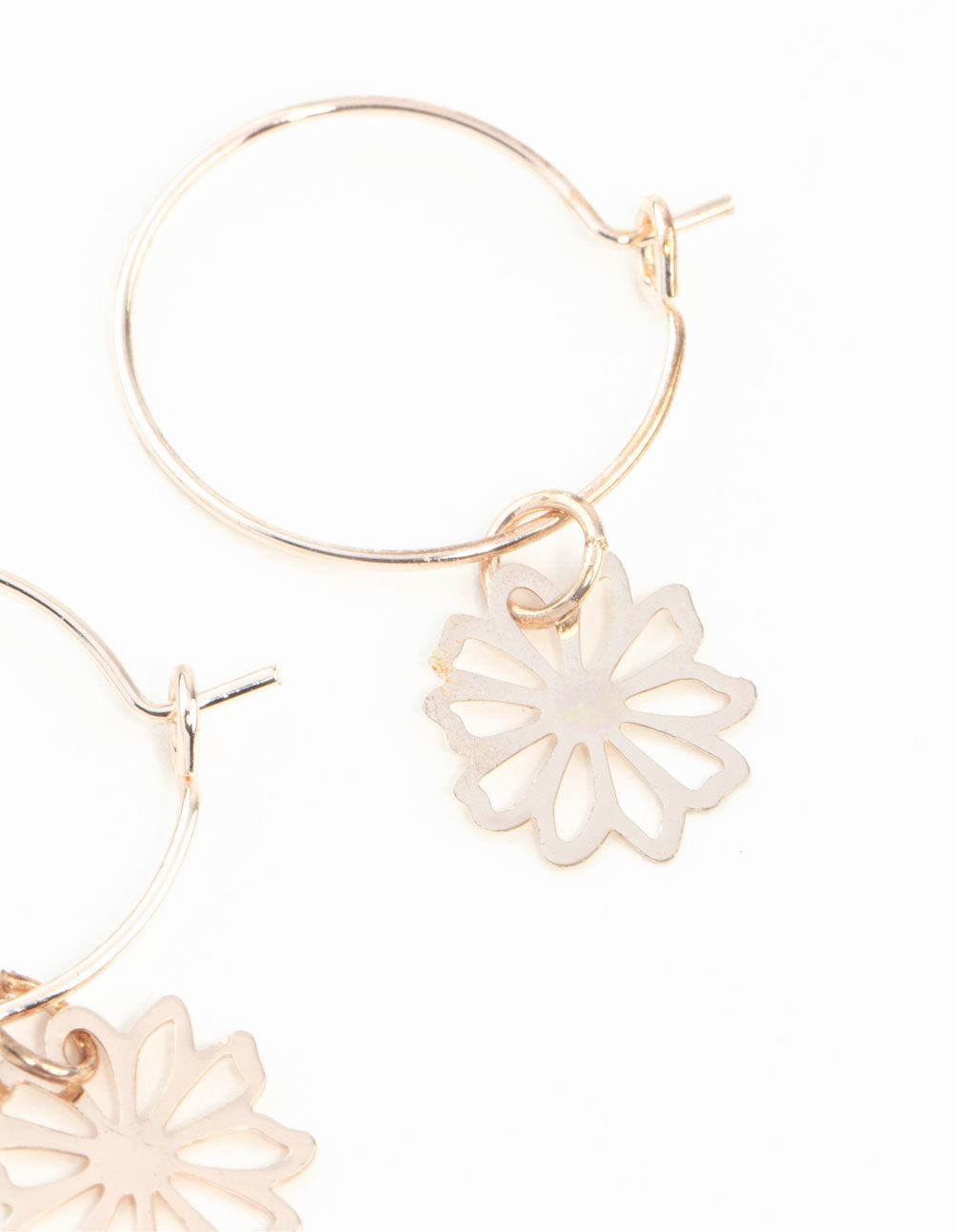 These hoop earrings boast a rose gold-tone setting featuring a dainty petal design.