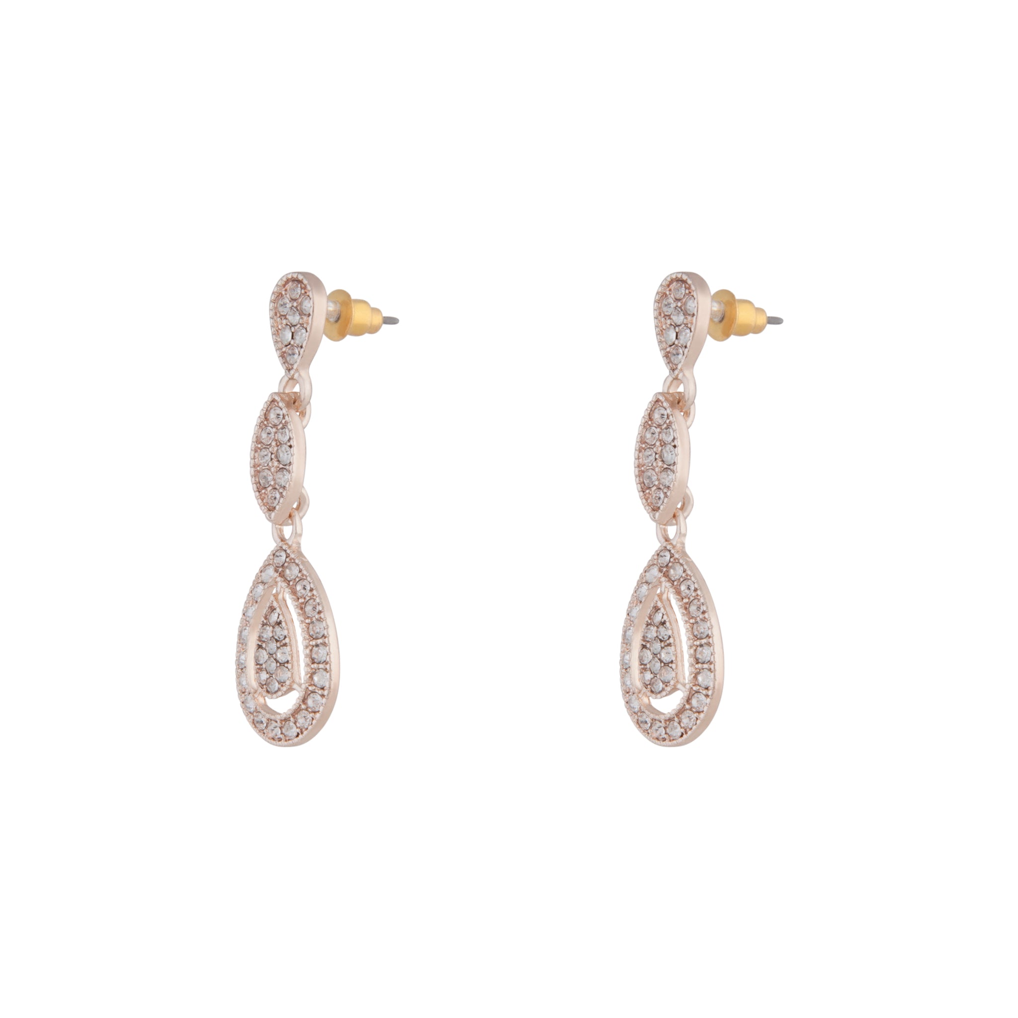 A glamorous pair of rose-gold-toned earrings with diamante embellishments.